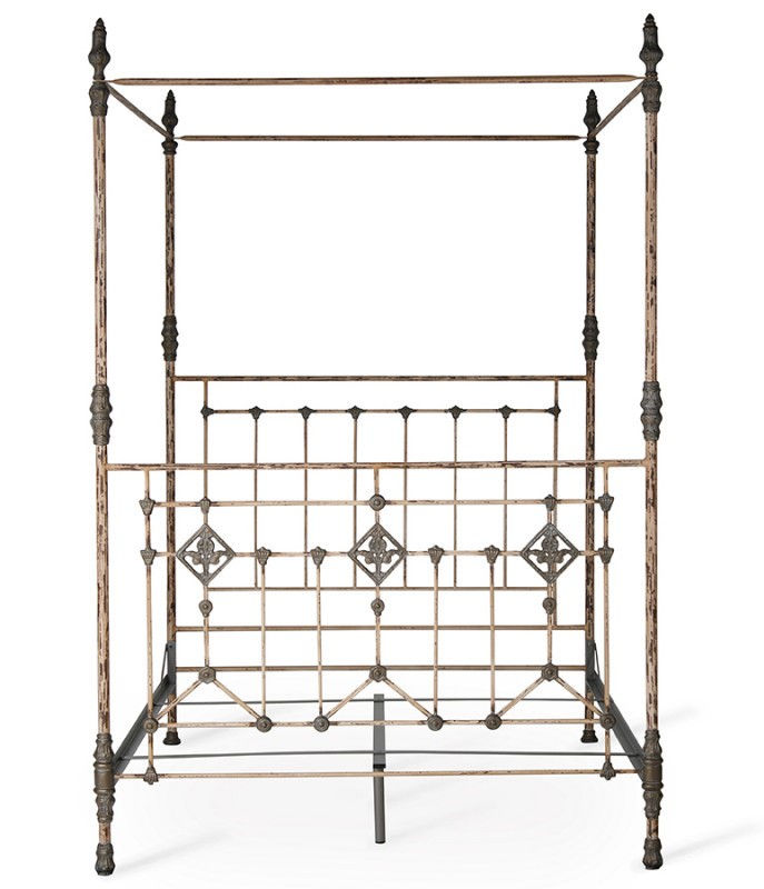 Clovis Iron Bed - Full Size Canopy with frame - Vintage Distressed Beige